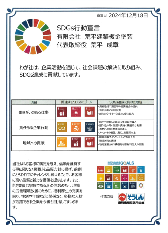 | 社名 | 有限会社 荒平建築板金塗装 |