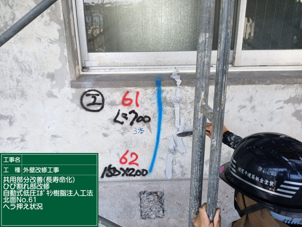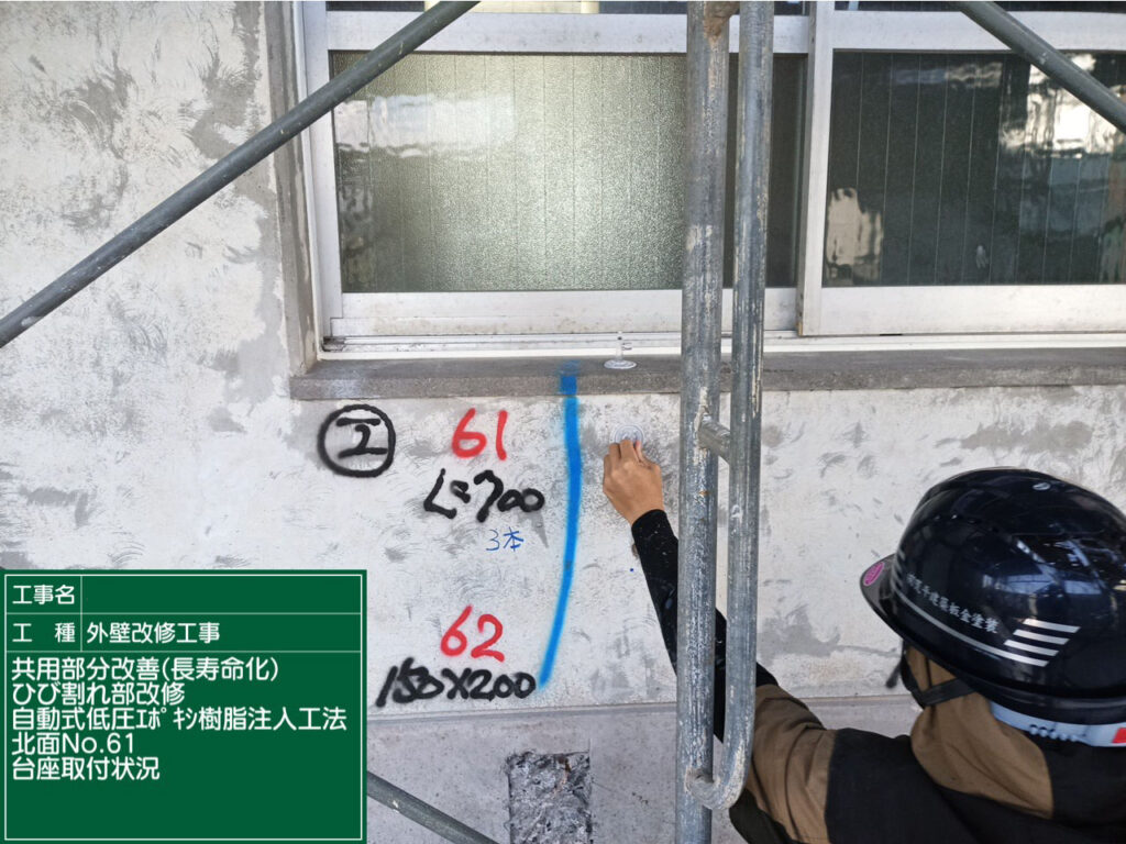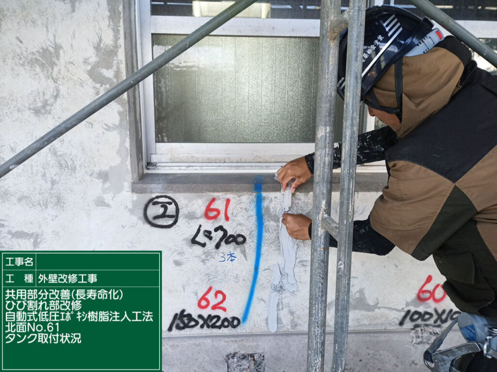 エポキシ樹脂注入用の器具(タンク)を取り付けます。工完了となります。