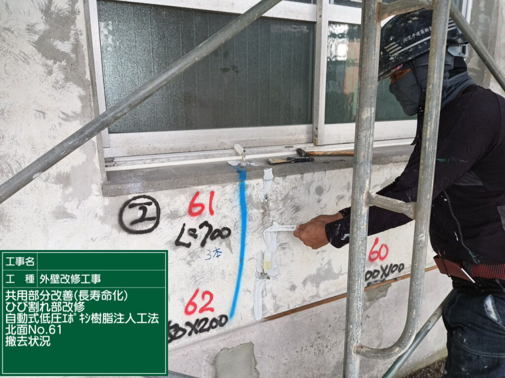 硬化後、注入器具やシール材を撤去します。